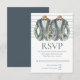 Gay Wedding Two Grooms in Suits and Bow Ties RSVP Card