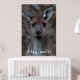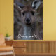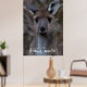 The western gray kangaroo (Macropus fuliginosus), is one of four large kangaroos and wallaroos that occur in Australia. The species is distributed across the southern part of the Australian mainland. Western gray kangaroos are large marsupials that are 97-223 centimeters from head to tail and three to 70 kilograms in weight (females weigh up to 34 kilograms). Although called gray kangaroos, they are light gray-brown to chocolate in color with paler undersides. Western gray kangaroos sometimes have white marks on the forehead and, unlike other kangaroos, the muzzle is finely haired. Males have a strong, characteristic odor and well-muscled shoulders and forearms. This beautiful canvas depicts a close up portrait from a cute, young western gray kangaroo. Who wouldn't want this face on a poster in their home? You can customize the poster with or without the Aussie slang, or feel free to use your own name instead!