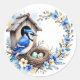 Geai bleu sur nichoir avec nid et fleurs – Illustr Classic Round Sticker