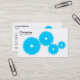 A business card template with an attractive motif made up of a series of cogged gear wheels creating a clean modern design suitable for many types of business. Company name and business on the front of the card. Name, address, telephony, email and web address on the reverse with a smaller version of the main motif.