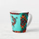 This is a Unique "One of a Kind" Gecko Lizard Latte Mug! It Features a Southwest Gecko Lizard and Sun on a Turquoise Background.....Surrounded by a Turquoise, Orange & Black Border!