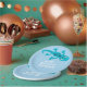 Gecko birthday paper plates for kids. The plates have a cute blue gecko. The background is blue. Personalizable paper plates with a Happy Birthday text and a child`s name. Easily personalise the plate. The text is in white colour. Great for a boy or girl birthday party.