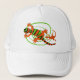 Cool gecko lizard graphic print cap. Bright orange and green striped reptile design.