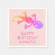Gecko birthday napkins for kids. The napkins have a cute gecko. Rainbow gecko is especially great for girls. The background is pink. Personalizable napkins with a Happy Birthday text and a child`s name. Easily personalise the napkins. The text is in white colour. Great for a girl birthday party.