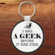 I was a geek before it was cool. If this statement is something you can relate to, this keychain is for you! The background colours may be changed to give this design more of a personal touch.
