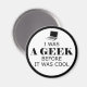 I was a geek before it was cool. If this statement is something you can relate to, this magnet is for you! The background colours may be changed to give this design more of a personal touch.