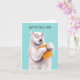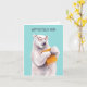 Birthday card for mother with a polar bear book lover. The artwork features a polar bear with eyeglasses holding a yellow book against a light blue background. The polar bear is depicted in a realistic style, with the eyeglasses adding a humourous and unconventional touch. The yellow book held by the polar bear adds a pop of colour to the piece and could symbolise knowledge, education, or the power of reading.