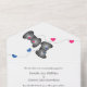 Did you and your beloved bond over your shared love of video gaming? This charming Geeky Gamers Wedding Invitation is absolutely perfect for you! Featuring a pair of grey video game controllers with pink and blue buttons connected by dots and hearts, this quirky offbeat design is perfect for your geeky or nerdy wedding! Customise with the details of your special day. Click on the "Customise It" button to find additional personalisation options.