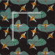Deco stylised flying geese in clouds over ponds fabric for sewing. By @trforsman. Collection “Deco Geese”.