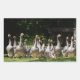 Rectangular photo sticker of grey foie gras geese at a goose farm near Sarlat-la-Canéda in the Périgord province, Dordogne area in France.