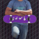 Stand out with this playful skateboard deck featuring white geese perched on black lines against a vibrant purple background. Minimal, quirky, and bold, this design is perfect for skaters who love fun, unique artwork with a modern twist. Ride it, collect it, or hang it as a whimsical art piece.