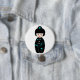 This is a lovely design of a geisha girl but done in a cartoon style. The recognisable geisha girl is dressed all in black and is standing there with a nice expression on her face. This geisha cartoon design looks great on this button. Perfect for yourself or as a gift