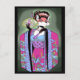 On this colourful postcard, a beautiful fox masquerades as a graceful geisha.