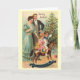 Vintage Dutch Christmas card showing a family enjoying Christmas. The two children are riding a rocking-horse.