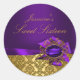 Sweet Sixteen Sticker. Gold & purple gem bow. Exclusive Zazzle. Customise with your own details. PLEASE NOTE all flat images! They Do NOT have real Bows, Diamonds or Jewels!!