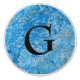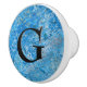 Knob in a gem stone slab pattern - blue Bahia granite in shades of sky blue flecked with deeper royal blue, and a customisable monogram, in a Deco font, with the look of black onyx