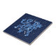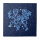 Tile in the zodiac symbol for Gemini in soft silver blue, overlaid with the stars of the constellation, against a starry sky background in deep midnight blue