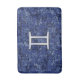 A silver chrome like Gemini zodiac symbol applique on a vibrant navy blue digital camouflage design texture print background. A modern urban racy design for a great custom birthday gift idea.