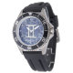 A silver chrome like Gemini zodiac symbol applique on a vibrant navy blue digital camouflage design texture print background. A modern urban racy design for a great custom birthday fashion watch gift idea.