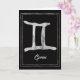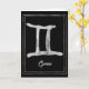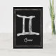 Send a personalised Happy Birthday greeting card to your favourite Gemini with this stylised hammered silver Gemini the Twins astrology zodiac star sign in a silver double line frame on a black background. The Happy Birthday and Zodiac sign text on the front of the card can be personalised if you have another greeting in mind. Inside the card you can add the name of the Birthday girl or boy above the text that says: You are going to have a terrific birthday, it's written in the stars. A fun personalised card for someone born under the star sign of Gemini.
