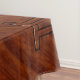 A Gemini zodiac symbol on a brown mahogany wood grain like background. A classic rich style design for a great custom birthday gift idea.