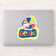 Here's a cute sticker that proudly proclaims your status as a Gemini! It features the twins with striped caps peeking over a banner with stylised text below in red and lime green that says "Gemini". Your name is in smaller text in white at the bottom right. If you prefer, you may easily remove the name by clearing the field. *Clip art used in this design is copyrighted by Encore Software, Inc., which permits use to its licensors. All rights reserved.