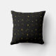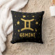 Custom throw pillow for "Gemini" with golden zodiac symbol, gold stars and black background.