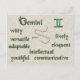 Here is a perfect way to send a birthday greeting or a thoughtful greeting that lets the receiver see their personality traits according to the stars. The back of the card has more titbits about Gemini, and there is space so you can include your own thoughts and sentiments. Or you can leave the space blank so they can include their own ideas. This is a great way to let your friends and family see how your appreciate their uniquely positive characteristics.
