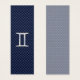 A silver chrome like Gemini zodiac sign applique on a navy blue carbon fibre design texture print background. A modern urban racy design for a great custom birthday gift idea.