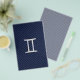 A silver chrome like Gemini zodiac sign applique on a navy blue carbon fibre design texture print background. A modern urban racy design for a great custom birthday gift idea.