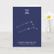 Creative and beautiful one-of-a-kind custom modern Gemini horoscope, astrology zodiac sign with a constellation birthday card. This is a personalised birthday card with the recipient's name and date of birth, as well as a spot for your own personalised birthday message on the inside. Show the special individual in your life your love by sending them a unique personalised Gemini zodiac birthday card.