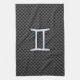 Gemini Zodiac Symbol Charcoal Carbon Fibre Style Tea Towel