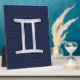 Gemini Zodiac Symbol Navy Blue Carbon Fibre Style Plaque