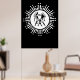Gemini Zodiac Symbol with Stars Black and White Poster