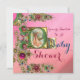 GEMS AND PINK GOLD FLORAL STORK GIRL BABY SHOWER INVITATION