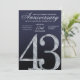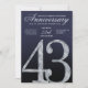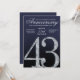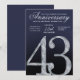 This elegant anniversary invitation card features a refined diamond-style number forty-three set against a deep navy blue background with luminous silver accents. The faceted crystal detailing creates a striking focal point, while smooth gradients and subtle light textures add depth and sophistication. The navy and silver color palette delivers a formal, luxurious feel, making this design ideal for hosting a polished and memorable 43rd anniversary celebration.