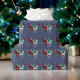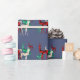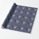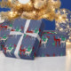 Uniquely stylish country blue Christmas wrapping paper designed with hand-painted watercolor crystal reindeer in three gemstone varieties: emerald, ruby and diamond