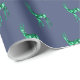 Hand-painted watercolor crystal reindeer in stunning emerald decorate this uniquely stylish Christmas holiday wrapping paper in country blue