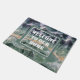 This welcome mat for your front door features a photo that captures the beautiful colours in a polished piece of fluorite. This gemstone displays colours of purple, green, and yellow in a striped pattern displaying the unique cubic crystals of this gem. "Welcome To Our Home" appears inside a rectangular frame in the centre of this door mat.