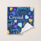 Cute originally designed text name personalised towel set. Diamond, sapphire blue and honey topaz, amethyst purple and aquamarine with typographical text towel set. Customised with your own name, currently reads Crystal. Other names available or contact me for name requests. Original watercolor gemstone art and design by Sarah Trett for www.mylittleeden.com