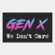Gen X - We Don't Care. This funny retro Gen X accessory is a great gift for a Generation X woman, man, husband, wife, boyfriend, girlfriend, father, mother, dad or mum who grew up in the 1970s, 1980s or 1990s. This vintage design is perfect for Gen Xers who remember the 80s and 90s, and who have nostalgia for icons, movies, music, bands, and tv shows from the eighties and nineties era.