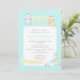 A whimsical gender neutral baby shower invitation featuring baby animals in mint, grey, and yellow tones. Personalise with your details!