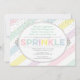 This neutral baby sprinkle invitation features glittery text and confetti with a diagonal stripe background pattern in multicolor rainbow and silver. The backside design is a solid mint green colour that matches the front. Your guests will love this stylish and unique design.