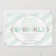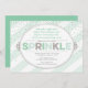 This gender neutral baby sprinkle invite features sparkle glittery text and confetti with a diagonal stripe background pattern in mint green and silver. The backside design is a solid mint green colour that matches the front. Your guests will love this modern and unique design.