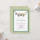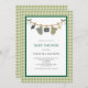 Gender neutral clothesline Halloween baby shower invitation. Easy to change the text. Cute halloween watercolor and bay clothes. Green gingham background. Cute, fun design for a baby shower.