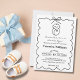 Celebrate your little one on the way with this stylish and customisable gender neutral baby shower invitation! This modern black and white design features a simple line art illustration of a baby wrapped in a blanket at the top, framed with an elegant black bow and string border for a chic, elegant, timeless touch.