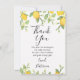 Looking for a citrus or lemon themed baby shower thank you card? All text in the design is editable so the heading can be altered to suit your needs. The design features lemon branches at the top and base of the card. This is a fresh and lovely way to thank guests for coming to your baby shower. Same design baby shower invitation is also available.