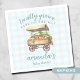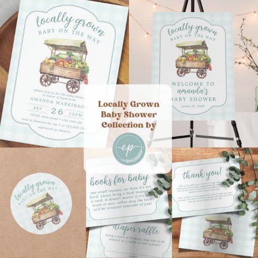 Add a fresh-from-the-farm touch to your table setting with these charming “Locally Grown Baby” shower paper napkins! Featuring a hand-painted watercolor veggie cart overflowing with fruits and vegetables, paired with the phrase “Locally Grown Baby On The Way” and a soft blue gingham background, these napkins are the perfect way to tie your rustic baby shower theme together.