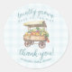 Add a sweet, rustic touch to your baby shower favours, envelopes, or party decor with this “Locally Grown Baby On The Way” thank you round sticker! Featuring a watercolor veggie cart filled with fresh fruits and vegetables and the phrase “Locally Grown Baby On The Way” in charming script, this design captures the heart of a farmhouse or garden-themed celebration. The soft blue gingham background ties it all together with cosy, country charm.