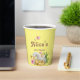 Gender Neutral Mummy and Baby Cute Baby Shower Paper Cups featuring cute smiling happy watercolor mummy duck with babies, arounded pink and beige flowers, greenery and hearts with pastel yellow background and minimalistic, siple design. Watercolor animals mum with baby is a sweet way to invite guests to a gender neutral Cute Baby Shower. Matching products avalibple, you can also ask me in massage for a needed item I can creating for you.